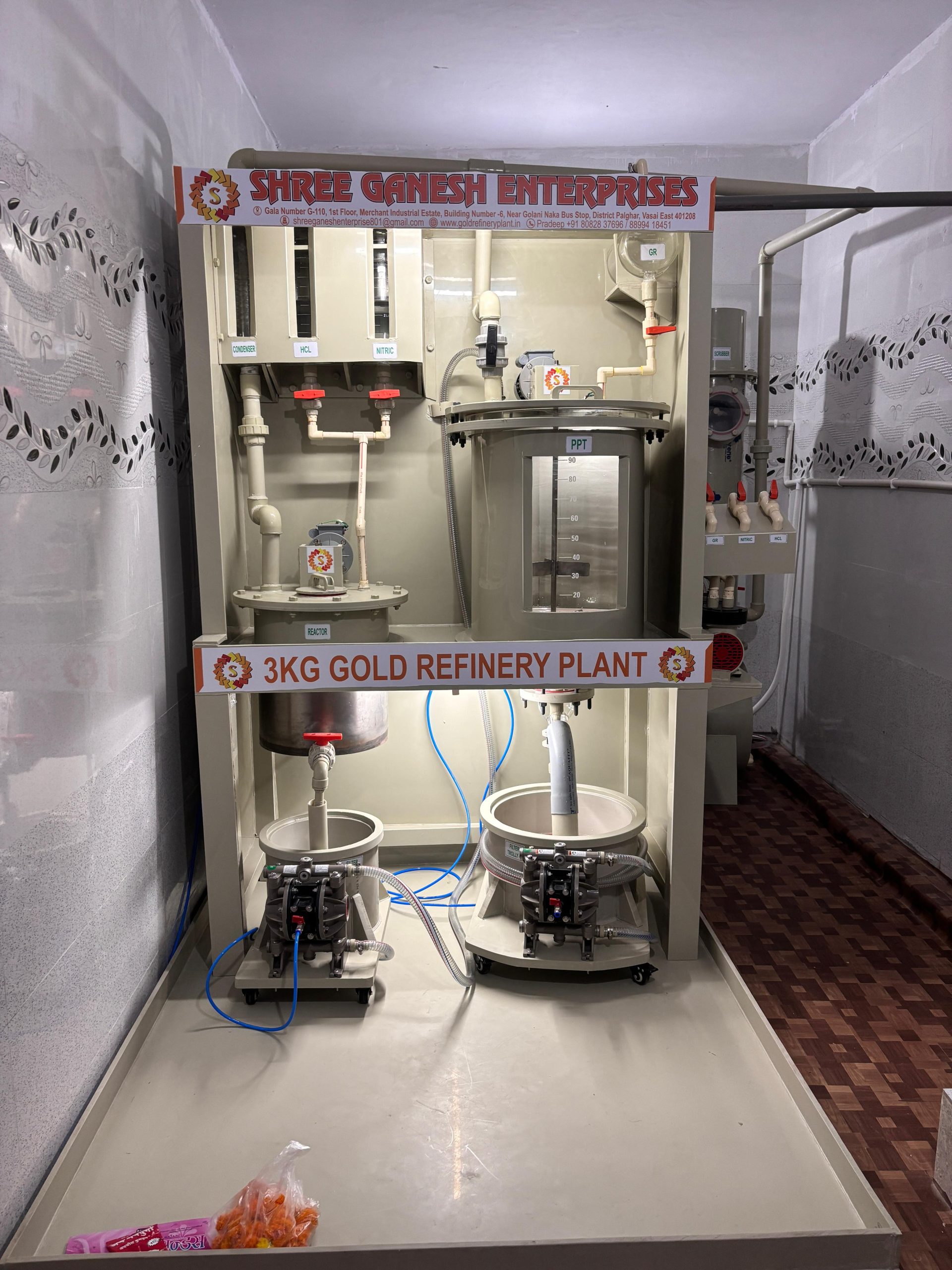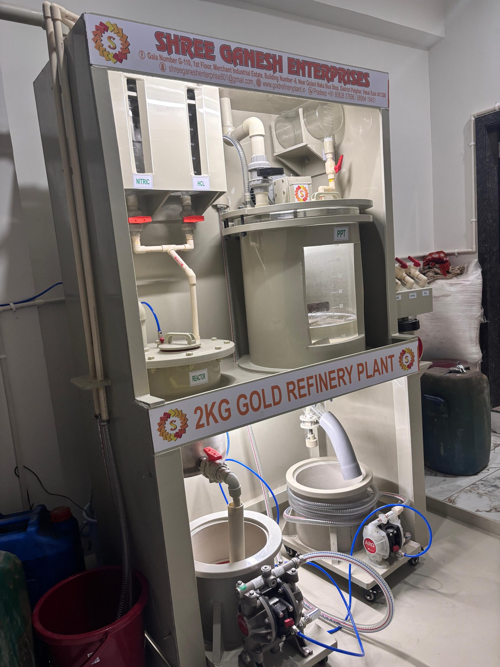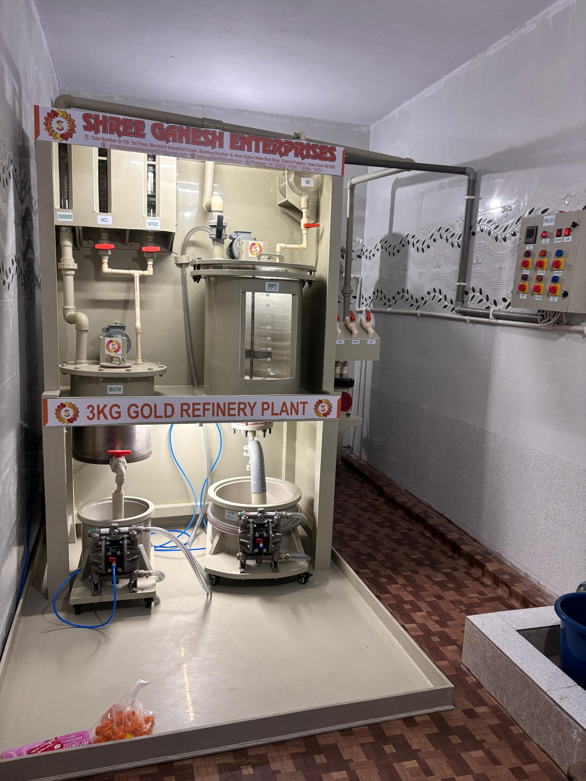 Our Gold Refining Machines are designed with high-grade titanium dissolution tanks, American AOD pumps, imported motors, and advanced fume neutralization systems. With auto-acid transfer, auto-filtration, cooling condensers, and zero vibration operation, our machines guarantee 99.99% purity and 100% metal recovery at a low refining cost.